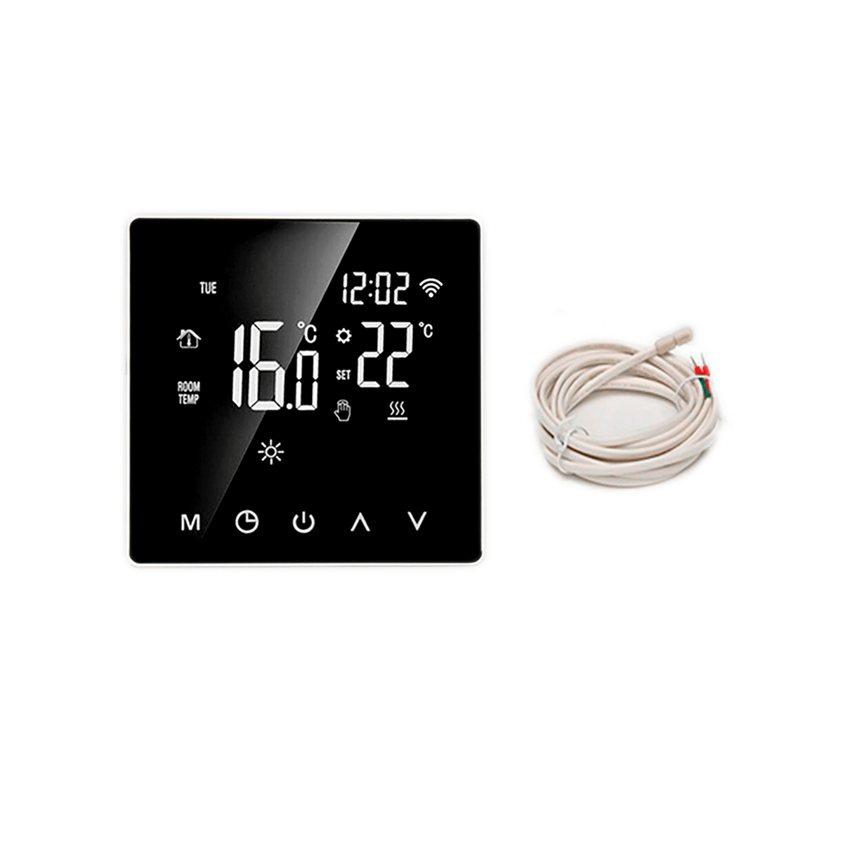 • Элегантный внешний вид и современный дизайн термостата отлично впишутся в любое помещение: дом, офис, отель, торговый центр. Комнатный регулятор имеет большой информативный жидкокристаллический зеркальный экран с сенсорным управлением и защитой от царапин. Дисплей оснащен сенсорными кнопками с оранжевой подсветкой для упрощения работы. При необходимости подсветку можно отключить.